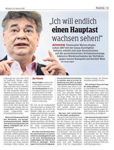 Vizekanzler Werner Kogler, schon 2007 mit der Causa Eurofighter befasst, erhofft sich eine Konzentration auf die aussichtsreichen Verfahrensstränge, inklusive Wiederaufnahme der Verfahren gegen Gernot Rumpold und Airchief Wolf. Von Claudia Gigler