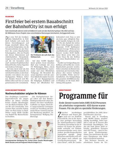 Seit eineinhalb Jahren wird in Feldkirch rund um den Bahnhof gebaut. Bis 2022 soll das 60-Millionen-Euro-Projekt, das verschiedene Nutzungen beinhaltet, fertiggestellt sein.