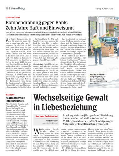 Im April vergangenen Jahres drohte ein 41-Jähriger einer Feldkircher Bank, die er 2014 überfallen hatte, telefonisch aus einer Gefängniszelle mit einer Bombe. Nun wurde er verurteilt.