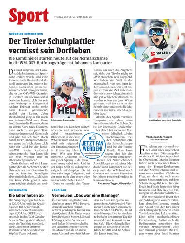 Die Kombinierer starten heute auf der Normalschanze in die WM. ÖSV-Hoffnungsträger ist Johannes Lamparter.