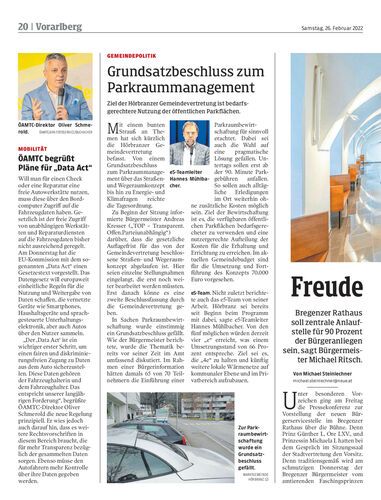 Ziel der Hörbranzer Gemeindevertretung ist bedarfsgerechtere Nutzung der öffentlichen Parkflächen.