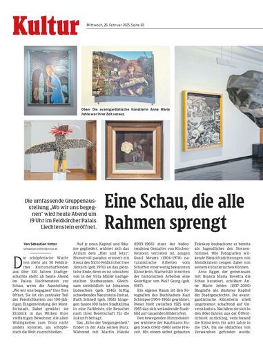 Die umfassende Gruppenausstellung „Wo wir uns begegnen“ wird heute Abend um 19 Uhr im Feldkircher Palais Liechtenstein eröffnet.