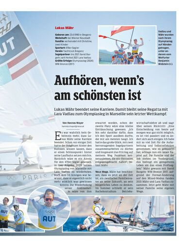 Lukas Mähr beendet seine Karriere. Damit bleibt seine Regatta mit Lara Vadlau zum Olympiasieg in Marseille sein letzter Wettkampf.