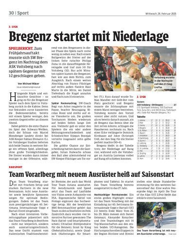 Spielbericht. Zum Frühjahrsauftakt musste sich SW Bregenz im Nachtrag dem ASK Voitsberg nach spätem Gegentor mit 1:2 geschlagen geben.