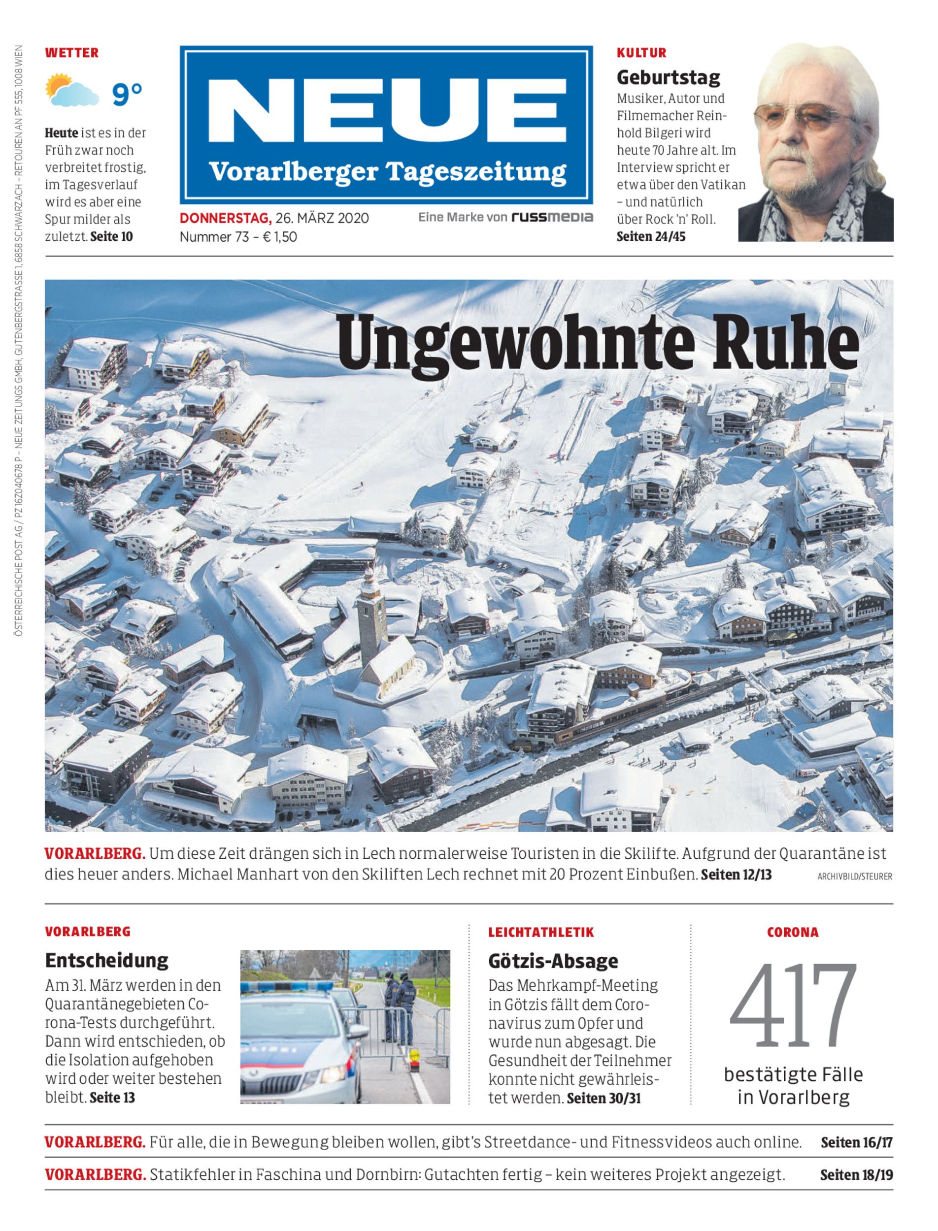 Vorarlberg. Um diese Zeit drängen sich in Lech normalerweise Touristen in die Skilifte. Aufgrund der Quarantäne ist dies heuer anders. Michael Manhart von den Skiliften Lech rechnet mit 20 Prozent Einbußen. Seiten 12/13 Archivbild/Steurer