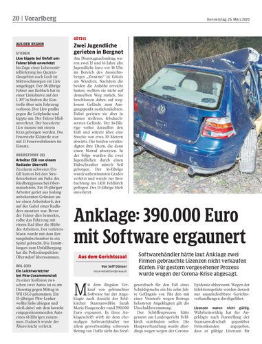 Softwarehändler hätte laut Anklage zwei Firmen gebrauchte Lizenzen nicht verkaufen dürfen. Für gestern vorgesehener Prozess wurde wegen der Corona-Krise abgesagt.