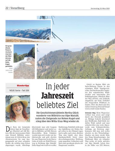 Die Geschichtenerzählerin Hertha Glück wanderte von Millrütte zur Alpe Maisäß, nahm die Zielgerade zur Hohen Kugel und stieg über den Wißa-Stua-Weg wieder ab.