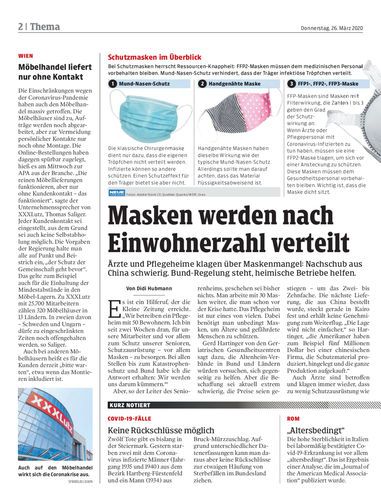 Ärzte und Pflegeheime klagen über Maskenmangel: Nachschub aus China schwierig. Bund-Regelung steht, heimische Betriebe helfen.