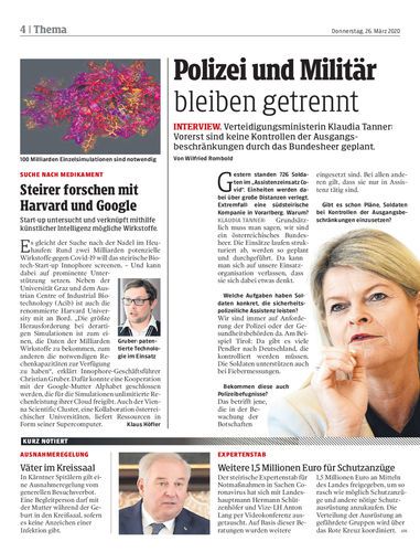 Verteidigungsministerin Klaudia Tanner: Vorerst sind keine Kontrollen der Ausgangs- beschränkungen durch das Bundesheer geplant. Von Wilfried Rombold