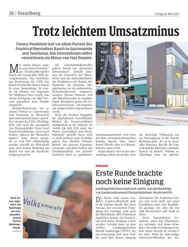 Corona-Pandemie traf vor allem Partner des Fruchtsaftherstellers Rauch in Gastronomie und Tourismus. Das Unternehmen selbst verzeichnete ein Minus von fünf Prozent.