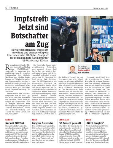 Heftige Debatten über Impfstoff- verteilung und strengere Export- kontrollen beim EU-Gipfel. „Stargast“ Joe Biden kündigte Kandidatur für US-Wahlkampf 2024 an.