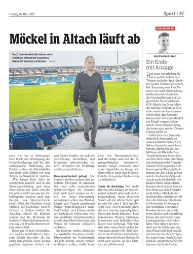 Sportdirektor Christian Möckel und der SCR Altach gehen ab Sommer getrennte Wege. Unterschiedliche Erwartungen und Vorstellungen verhinderten die weitere Zusammenarbeit.