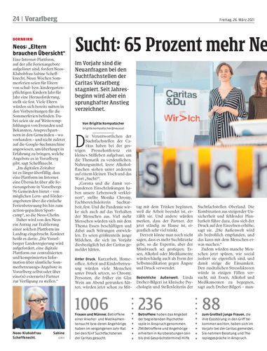 Im Vorjahr sind die Neuanfragen bei den Suchtfachstellen der Caritas Vorarlberg stagniert. Seit Jahresbeginn wird aber ein sprunghafter Anstieg verzeichnet.