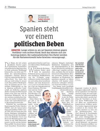 analyse. Lange schien es, als sei Spanien immun gegen Verführer vom rechten Rand. Doch das könnte sich am Sonntag ändern. Der nationalistischen Vox-Partei werden für die Parlamentswahl hohe Gewinne vorausgesagt.