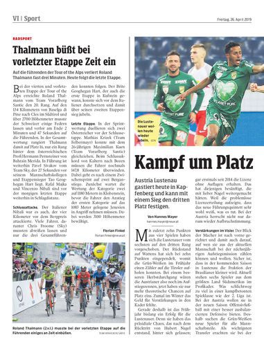 Auf die führenden der Tour of the Alps verliert Roland Thalmann fast drei Minuten. Heute folgt die letzte Etappe.