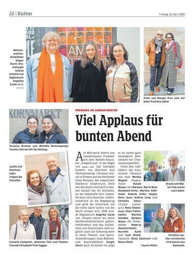 In der Regie von Angelika Zacek war am Mittwoch die Premiere von Amphitryon im Vorarlberger Landestheater zu sehen.