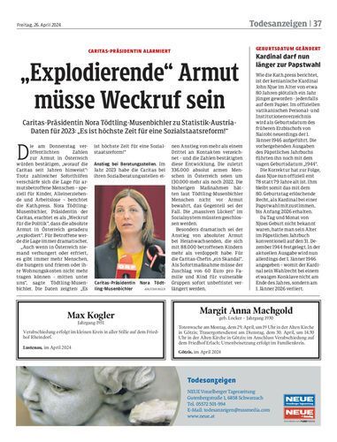 Caritas-Präsidentin Nora Tödtling-Musenbichler zu Statistik-Austria-Daten für 2023: „Es ist höchste Zeit für eine Sozialstaatsreform!“