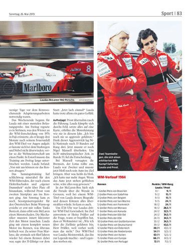 Am Montag verstarb Niki Lauda im Alter von 70 Jahren. In seiner Erinnerung ein Blick in den Rückspiegel auf Laudas dritten WM-Titel, den er 1984 mit nur einem halben Punkt Vorsprung eroberte.