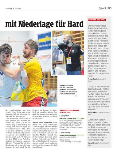 Die Harder verlieren in Krems knapp mit 27:29 und zeigen, dass sie im Titelkampf ein ganz gewichtiges Wörtchen mitreden wollen. Spiel Nummer zwei ist am Dienstag in Hard.