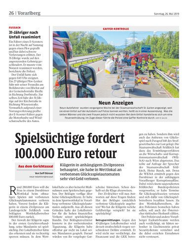 Spielsüchtige fordert100.000 Euro retour