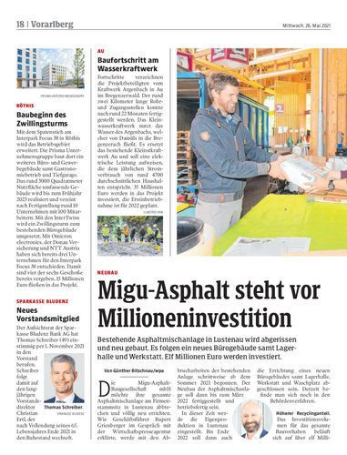 Bestehende Asphaltmischanlage in Lustenau wird abgerissen und neu gebaut. Es folgen ein neues Bürogebäude samt Lagerhalle und Werkstatt. Elf Millionen Euro werden investiert.