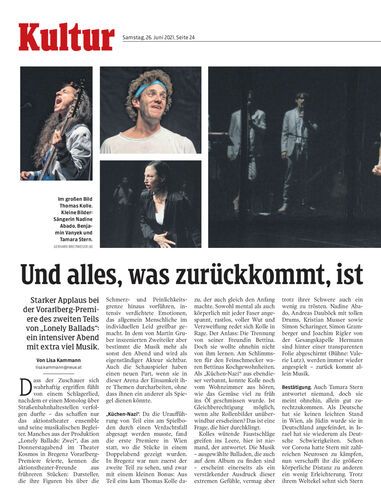 Starker Applaus bei der Vorarlberg-Premiere des zweiten Teils von „Lonely Ballads“: ein intensiver Abend mit extra viel Musik.