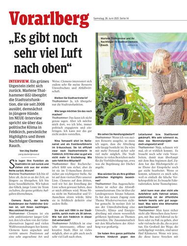 Interview. Ein grünes Urgestein zieht sich zurück. Marlene Thalhammer (65) übergibt die Stadtratsfunktion, die sie seit 2008 ausübt, demnächst in jüngere Hände. Im NEUE-Interview spricht sie über das politische Klima in Feldkirch, persönliche Highlights und ihren Nachfolger Clemens Rauch.