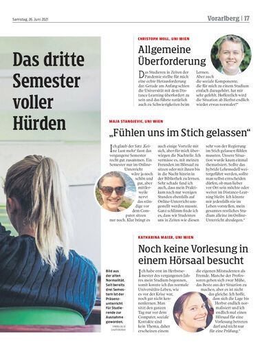 Der Vorlesungszeitraum neigt sich gen Ende, das dritte Semester in Zeiten der Krise wäre somit fast überstanden. Doch wie erlebten Vorarlberger Studierende den Uni-Alltag in Zeiten der Pandemie? Die NEUE Vorarlberger Tageszeitung hat nachgefragt.