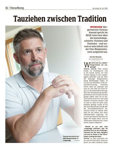 Interview. Bürgermeister Thomas Konrad spricht im NEUE-Interview über die Gemeindegeschichte, Visionen und Visionäre – und warum er sein Gehalt mit der Vize-Bürgermeisterin aufgeteilt hat.