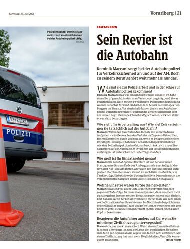 Dominik Maccani sorgt bei der Autobahnpolizei für Verkehrssicherheit an und auf der A14. Doch zu seinem Beruf gehört weit mehr als nur das.