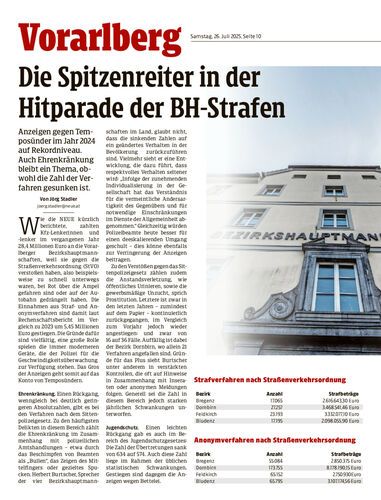 Anzeigen gegen Temposünder im Jahr 2024 auf Rekordniveau. Auch Ehrenkränkung bleibt ein Thema, obwohl die Zahl der Verfahren gesunken ist.