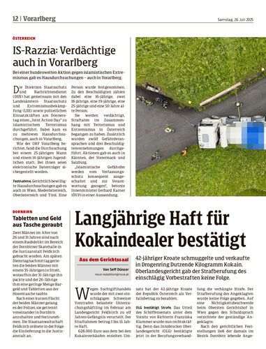 Bei einer bundesweiten Aktion gegen islamistischen Extremismus gab es Hausdurchsuchungen – auch in Vorarlberg.