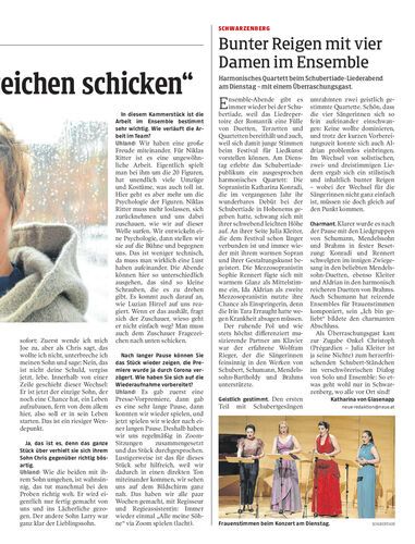 Harmonisches Quartett beim Schubertiade-Liederabend am Dienstag – mit einem Überraschungsgast.