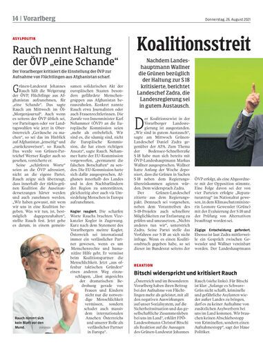 Der Vorarlberger kritisiert die Einstellung der ÖVP zur Aufnahme von Flüchtlingen aus Afghanistan scharf.