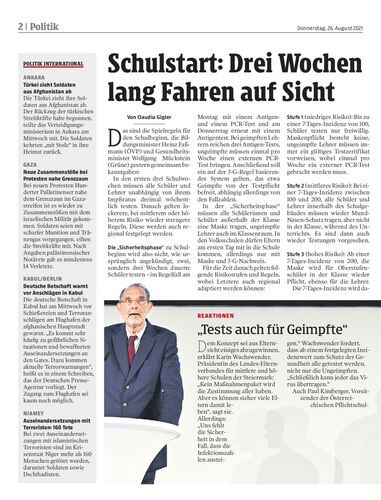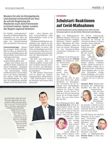 Schulstart: Reaktionen auf Covid-Maßnahmen