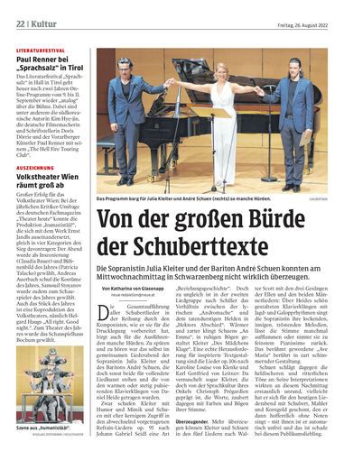 Die Sopranistin Julia Kleiter und der Bariton André Schuen konnten am Mittwochnachmittag in Schwarzenberg nicht wirklich überzeugen.