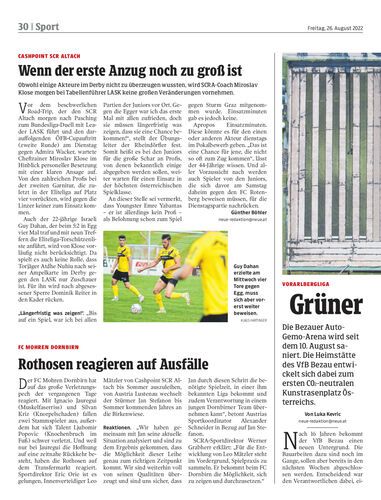 Obwohl einige Akteure im Derby nicht zu überzeugen wussten, wird SCRA-Coach Miroslav Klose morgen bei Tabellenführer LASK keine großen Veränderungen vornehmen.