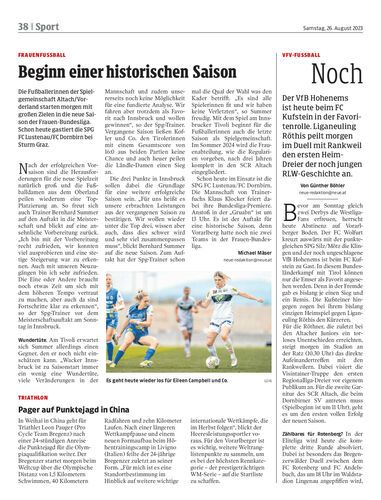 Die Fußballerinnen der Spielgemeinschaft Altach/Vorderland starten morgen mit großen Zielen in die neue Saison der Frauen-Bundesliga. Schon heute gastiert die SPG FC Lustenau/FC Dornbirn bei Sturm Graz.