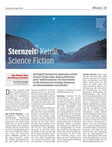 Der Begriff Sternzeit ist spätestens seit der Science-Fiction-Serie „Raumschiff Enterprise“ weithin bekannt. Für Astronomen ist die Sternzeit ein wichtiger Parameter, um Himmelsobjekte aufzufinden.