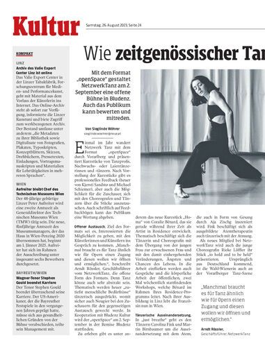 Mit dem Format „openSpace“ gestaltet NetzwerkTanz am 2. September eine offene Bühne in Bludenz. Auch das Publikum kann bewerten und mitreden.