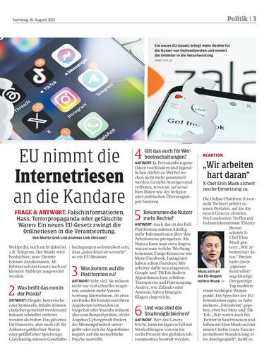 Frage & Antwort. Falschinformationen, Hass, Terrorpropaganda oder gefälschte Waren: Ein neues EU-Gesetz zwingt die Onlineriesen in die Verantwortung. Von Moritz Groß und Andreas Lieb (Brüssel)