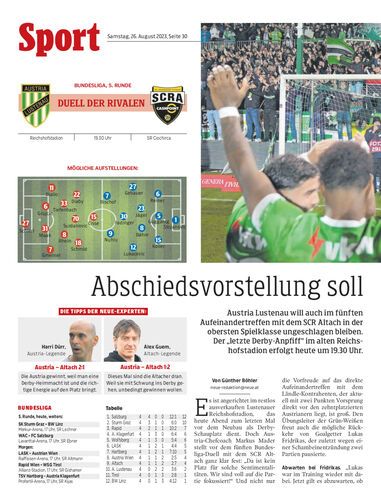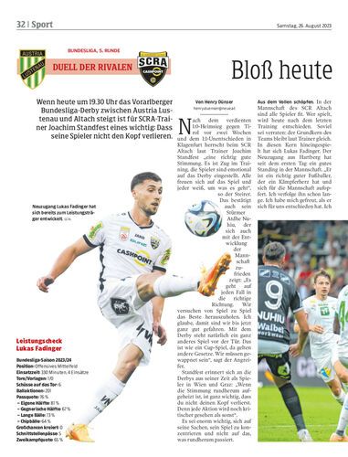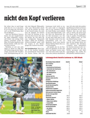 Wenn heute um 19.30 Uhr das Vorarlberger Bundesliga-Derby zwischen Austria Lustenau und Altach steigt ist für SCRA-Trainer Joachim Standfest eines wichtig: Dass seine Spieler nicht den Kopf verlieren.