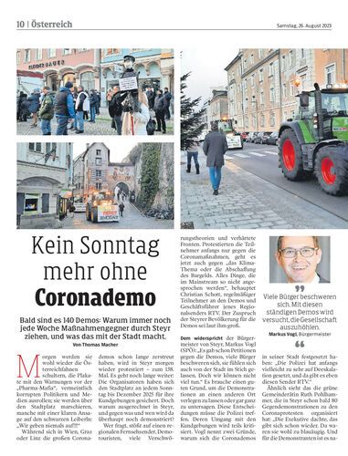 Bald sind es 140 Demos: Warum immer noch jede Woche Maßnahmen-Gegner durch Steyr ziehen, und was das mit der Stadt macht. Von Thomas Macher