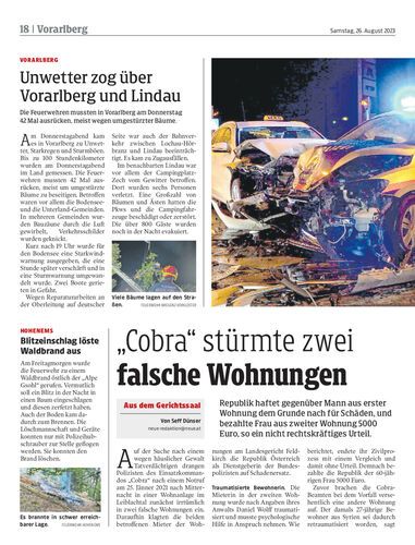 Republik haftet gegenüber Mann aus erster Wohnung dem Grunde nach für Schäden, und bezahlte Frau aus zweiter Wohnung 5000 Euro, so ein nicht rechtskräftiges Urteil.