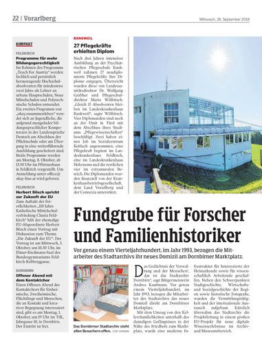 Vor genau einem Vierteljahrhundert, im Jahr 1993, bezogen die Mitarbeiter des Stadtarchivs ihr neues Domizil am Dornbirner Marktplatz.