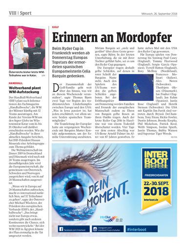 Beim Ryder Cup in Frankreich werden ab Donnerstag Europas Topstars der ermordeten spanischen Europameisterin Celia Barquin gedenken.