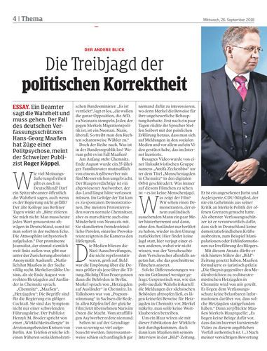 ESSAY. Ein Beamter sagt die Wahrheit und muss gehen. Der Fall des deutschen Verfassungsschützers Hans-Georg Maaßen hat Züge einer Politpsychose, meint der Schweizer Publizist Roger Köppel.