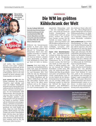 Vor der Fußball-WM 2022 betreibt das Emirat Katar Scheichwerbung mit der Leichtathletik-WM. Mit einem Marathon um Mitternacht und einer elektronischen Pille, die vor der Hitze schützen soll.