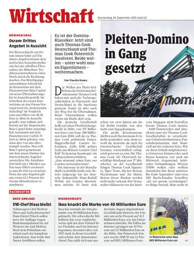 Es ist der Domino-Klassiker: Jetzt sind auch Thomas Cook Deutschland und Thomas Cook Österreich insolvent. Beide wollen – unter wohl neuen Eigentümern – weitermachen.