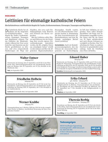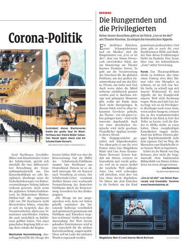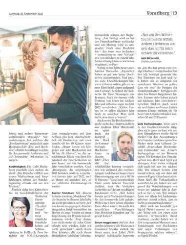 Kultur. Die für diese Woche geplanten SOV-Konzerte sowie der letzte Schubertiade-Zyklus 2020 wurden abgesagt – wegen neuen Besucherbeschränkungen und der Reisewarnung. Nun wird Kritik am Vorgehen laut. Seiten 26/27 Bruno Klomfar